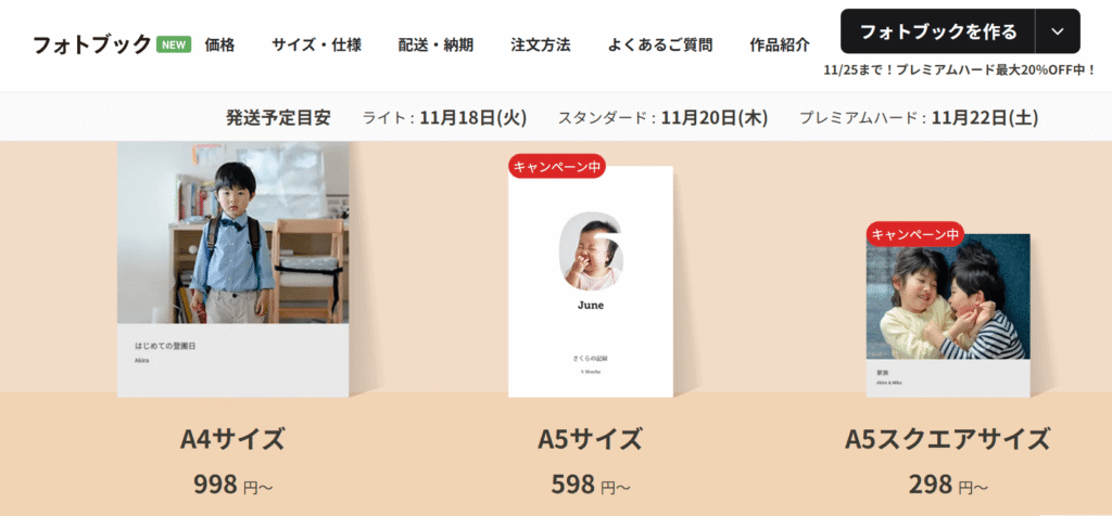| フォトブックの料金 | 6,070円~ ※送料:220円~ |